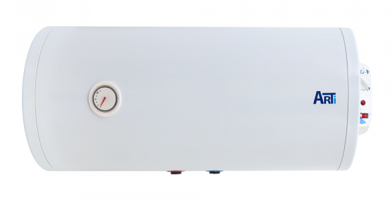 Водонагрівач накопичувальнийі;nbsp;Arti, потужністюі;nbsp;2000 Вті;nbsp;з сухим теном, оснащений баком об'ємом 80 літрів, з антикорозійним склокерамічним титановим покриттям. Модель горизонтального монтажу з механічним управлінням і зовнішнім термо..