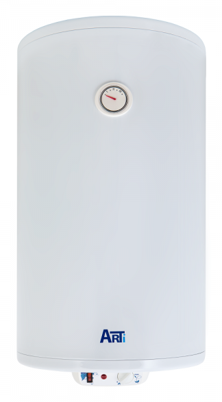 Водонагрівач накопичувальнийі;nbsp;Arti, потужністюі;nbsp;2000 Вті;nbsp;з сухим теном, оснащений баком об'ємом 80 літрів, з антикорозійним склокерамічним титановим покриттям. Модель вертикального монтажу з механічним управлінням і зовнішнім терморе..