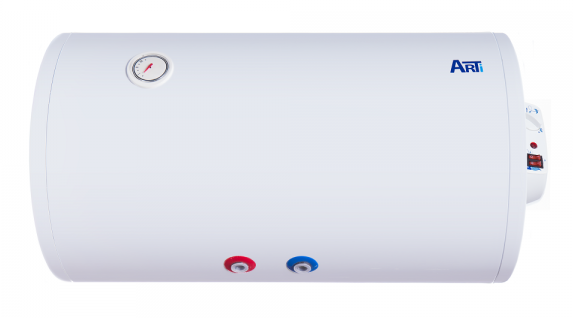 Водонагрівач накопичувальнийі;nbsp;Arti, потужністюі;nbsp;2000 Вті;nbsp;з мокрим теном, оснащений баком об'ємом 80 літрів, з антикорозійним склокерамічним титановим покриттям. Модель горизонтальногоі;nbsp;монтажу з механічним управлінням і зовнішні..