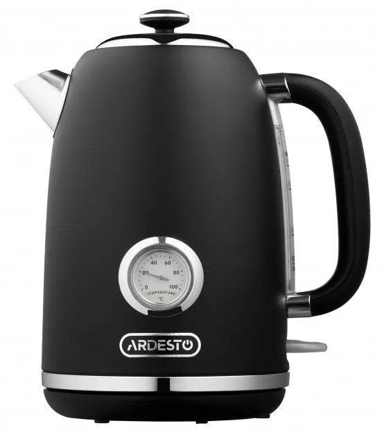 Електрочайник ARDESTO EKL-F410BM чорного кольору.Корпус із нержавіючої сталі, ергономічна ручка. Модель оснащена британським контролером Strix. Передбачена функція відключення за відсутності води та після її закипання. Потужність складає 2200 Вт, а..