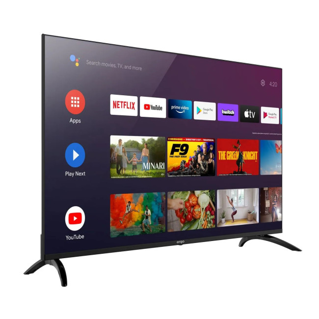 дизайнДизайн телевізора з ультратонкою рамкою ідеально впишеться у ваш інтер'єр.Офіційна та найпопулярніша операційна система у світі від Google вже у вашому телевізорі ERGO. Безмежні можливості з перегляду світових стрімінгових сервісів, найновіші прем'єри, музика, ігри та мандрівки в інтернеті на кнопці вашого пульта.Офіційна та найпопулярніша операційна система у світі від Google вже у вашому телевізорі ERGO. Безмежні можливості з перегляду світових стрімінгових сервісів, найновіші прем'єри, музика, ігри та мандрівки в інтернеті на кнопці вашого пульта.Захоплюйтеся найкращою динамікою звучанням від dbx-tv – ця технологія обробки звуку розроблена саме для компактних акустичних систем телевізорів і дозволяє отримати чисті високі та глибокі низькі частоти для комфортнішого сприйняття.Захоплюйтеся найкращою динамікою звучанням від dbx-tv – ця технологія обробки звуку розроблена саме для компактних акустичних систем телевізорів і дозволяє отримати чисті високі та глибокі низькі частоти для комфортнішого сприйняття.Голосове