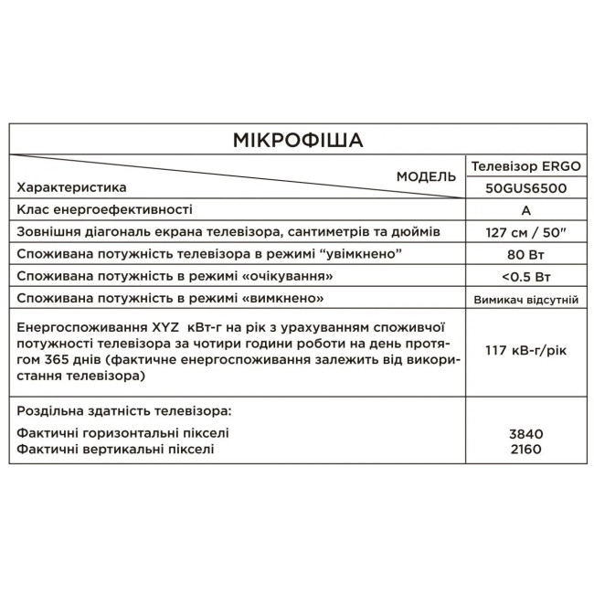 Характеристики Телевізор ERGO 50GUS6500