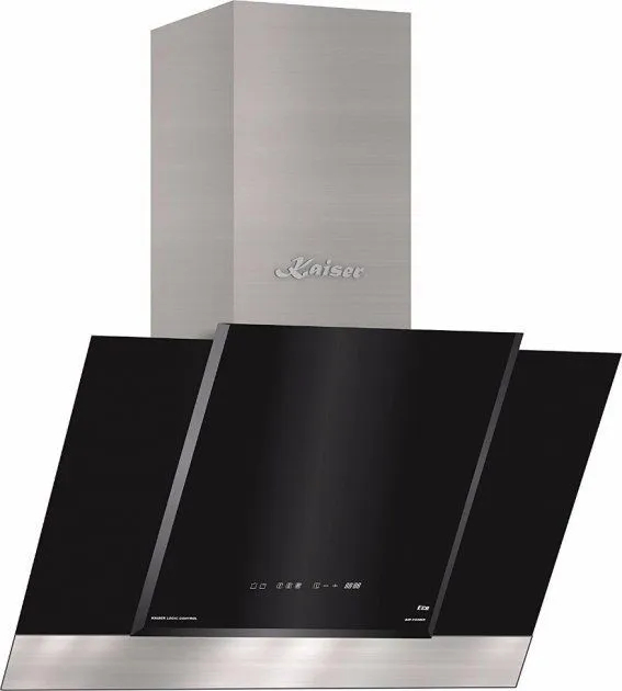 Похила витяжка KAISER AT 8438 F Eco виготовлена в сучасному стилі, з загартованого, термостійкого чорного скла та неіржавкої сталі. Сенсорне керування уможливлює особливо комфортне керування витяжкою. Модель має максимальну потужність 910 куб. м/го..
