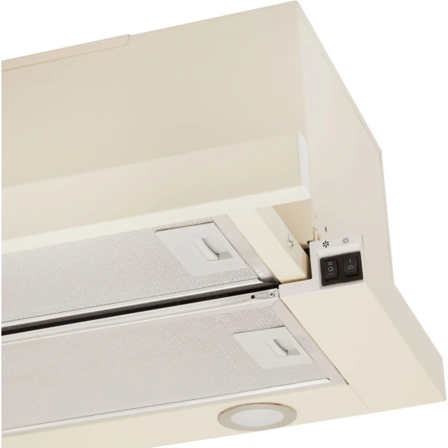 Вмикати та вимикати витяжку можна за допомогою телескопічної панелі чи механічних клавіш. Доступні дві швидкості роботи, щоб легко позбутися небажаних запахів і випарів на кухні.